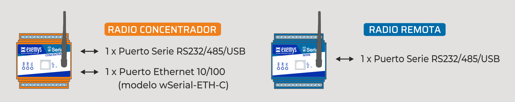 | WSerial-N | Nodo remoto | 1x RS232/485 | USB |