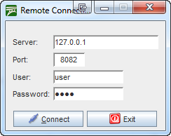 Al abrirlo se le pedirá que indique la dirección IP/URL donde esta corriendo el MW. También el usuario y contraseña de configuración remota del MW.