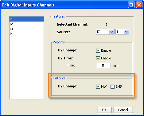 En este caso los canales de entradas digitales disponen de históricos por cambio, esto quiere decir que se generara un registro por cada cambio de esta entrada.