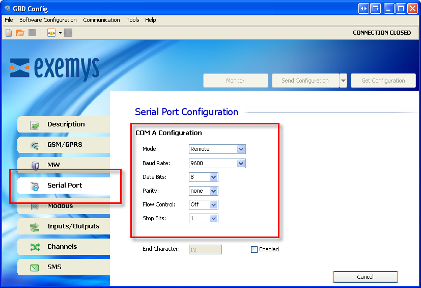 A continuación se detallaran los parámetros que pueden ser configurados en el puerto serie.