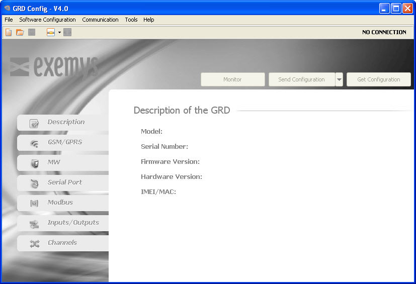 Si el Configurador encuentra con un modelo desconocido no habilitará ninguna de las pantallas. En ese caso contáctese con soporte@exemys.com para obtener la versión del software actualizada. |