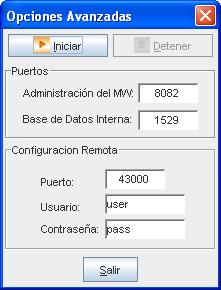 La dirección IP que debemos cargar es aquella en la que se encuentra corriendo el MW, y el puerto es el que esta configurado para tener acceso remoto a el.