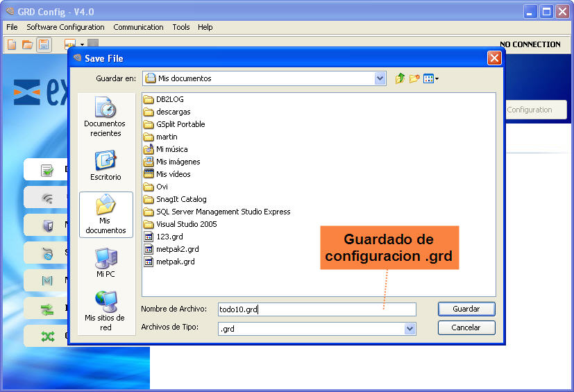 El “GRD Config” nos permite guardar la configuración de un ERD de manera que si tenemos que configurar muchos equipos de la misma manera, no tendremos que cargar nuevamente los parámetros uno por uno, solamente se deberá tener en cuenta que el numero de ID del ERD tendrá que ser cambiado para que no nos quede un duplicado.