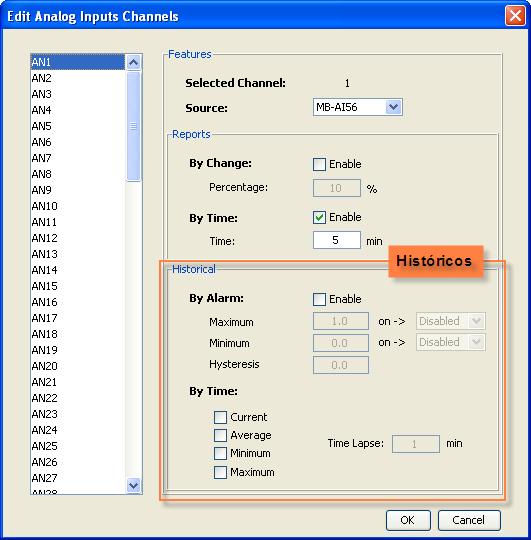 Al igual que en las entradas digitales es posible llevar un histórico de las entradas analógicas bajo dos criterios claramente definidos.