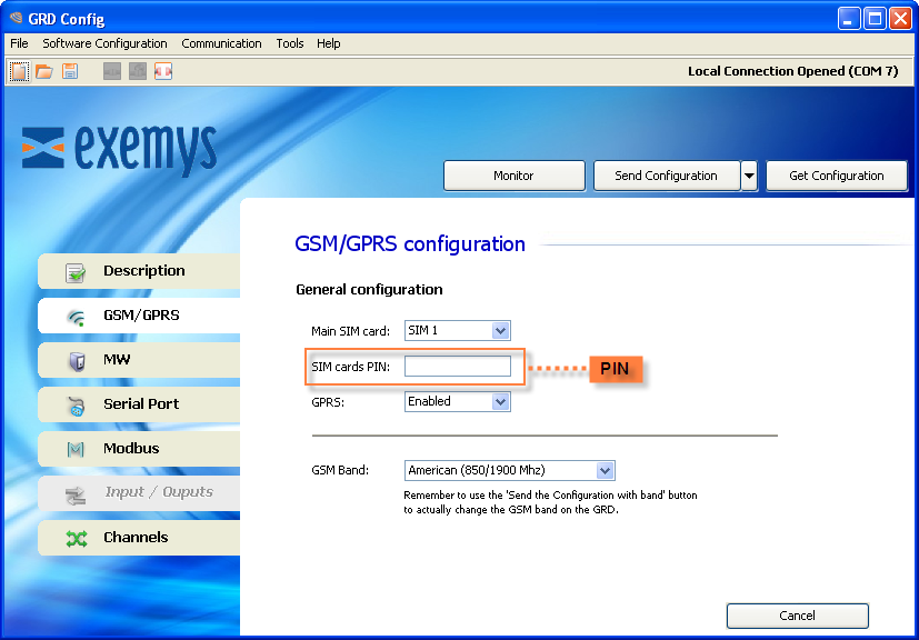 Para realizar la carga del PIN deberá ir a la solapa “GSM/GPRS -> General Configuration”.