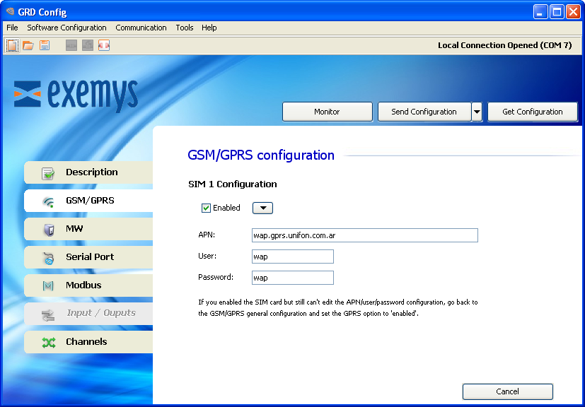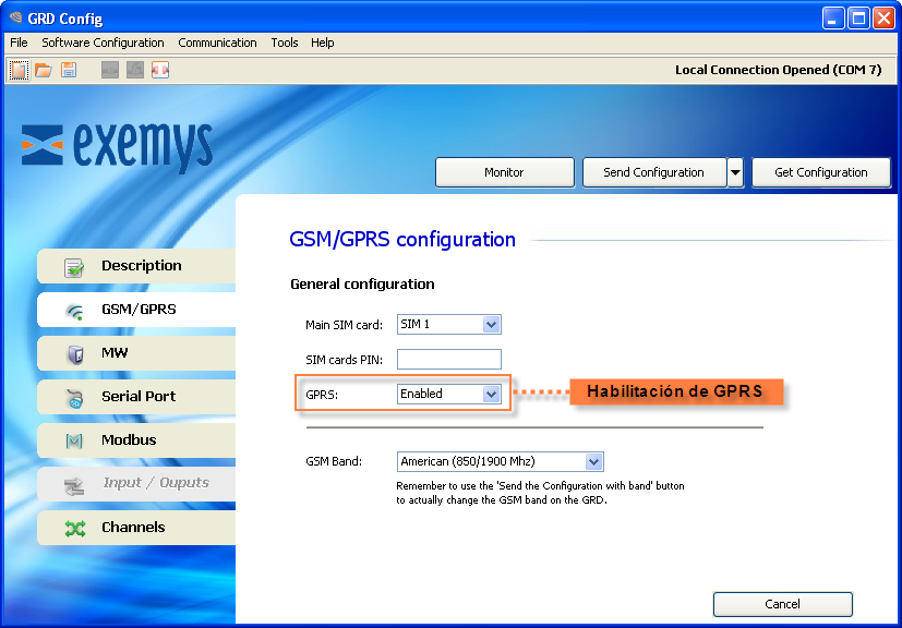La conexión GPRS se utiliza cuando deseamos que el equipo se conecte al MW. En caso de utilizar solo SMS no es necesario utilizar la conexion GPRS y la misma puede deshabilitarse. |