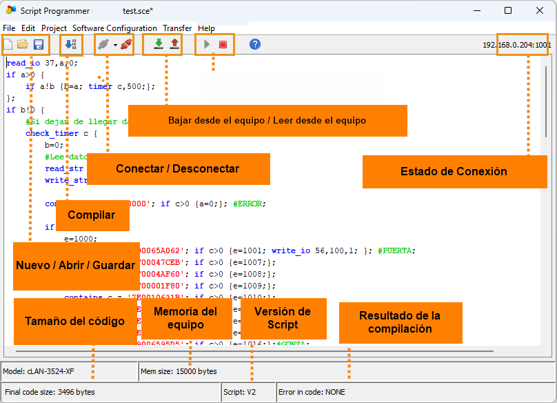 Este programa permite desarrollar, compilar y transferir el script al GRD/cLAN. Para utilizarlo, primero tenemos que asegurarnos de que el “GRDconfig” funciona correctamente y podemos comunicarnos con el GRD/cLAN.