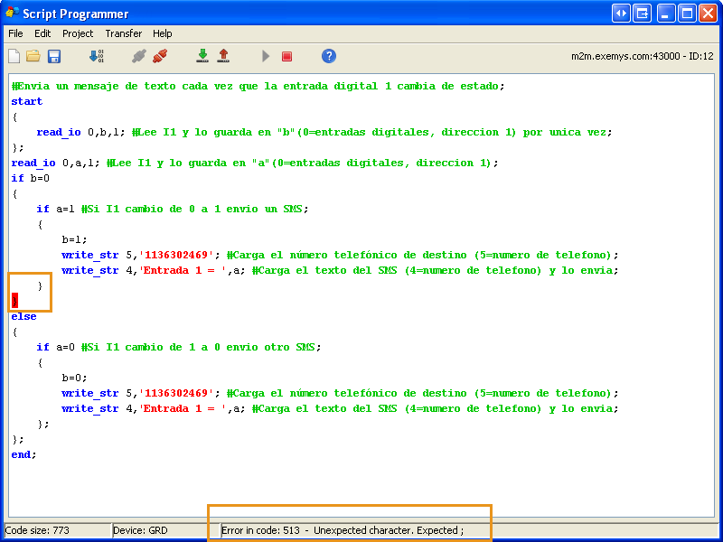 Si este espacio no es suficiente para su aplicación puede usar la opción de compresión de scripts. Al hacerlo el Script Programmer quitará todos los comentarios y tabulaciones antes de enviar el programa.