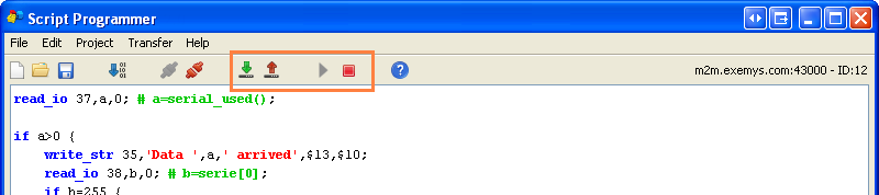 Una vez establecida la conexión se podrán usar los botones "Download", "Upload", "Start" y "Stop" como si estuviera conectado localmente al equipo.
