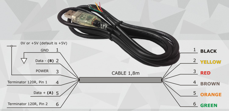 El cable USB-485 sirve como convertidor de señales UART USB a RS485. Este cable maneja eficazmente toda la señalización del protocolo USB, permitiendo una conexión rápida y eficiente de dispositivos con interfaz RS485.