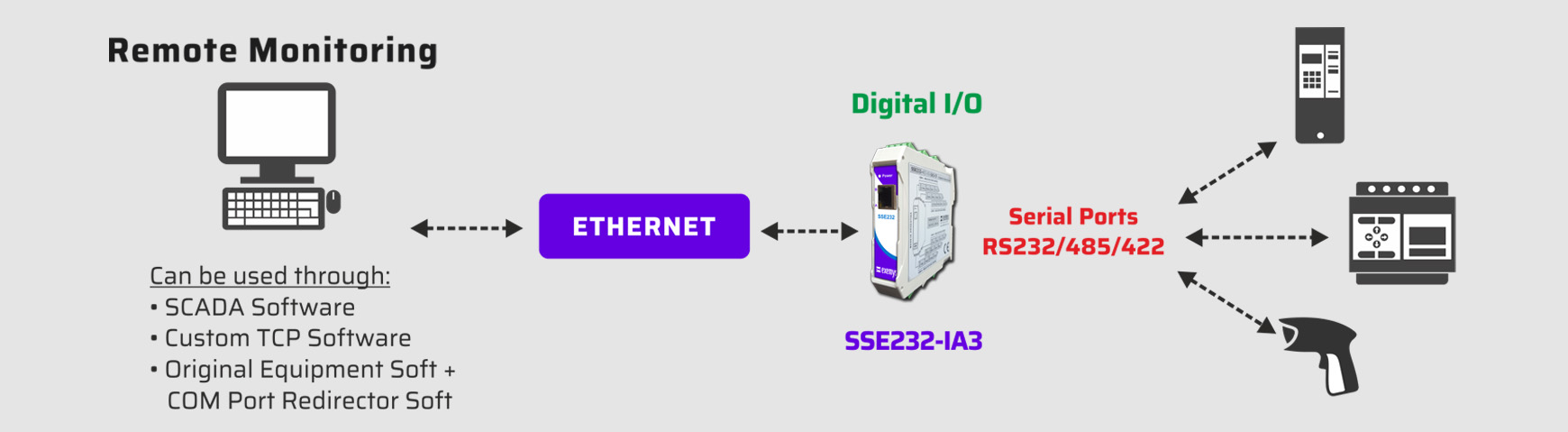 Serial servers, also known as serial-to-Ethernet converters, are network devices that allow devices with serial communication interfaces (RS-232, RS-422, or RS-485) to connect to an Ethernet network. This is especially useful in environments where older or specialized devices with only serial ports need to be integrated with modern IP-based networks.